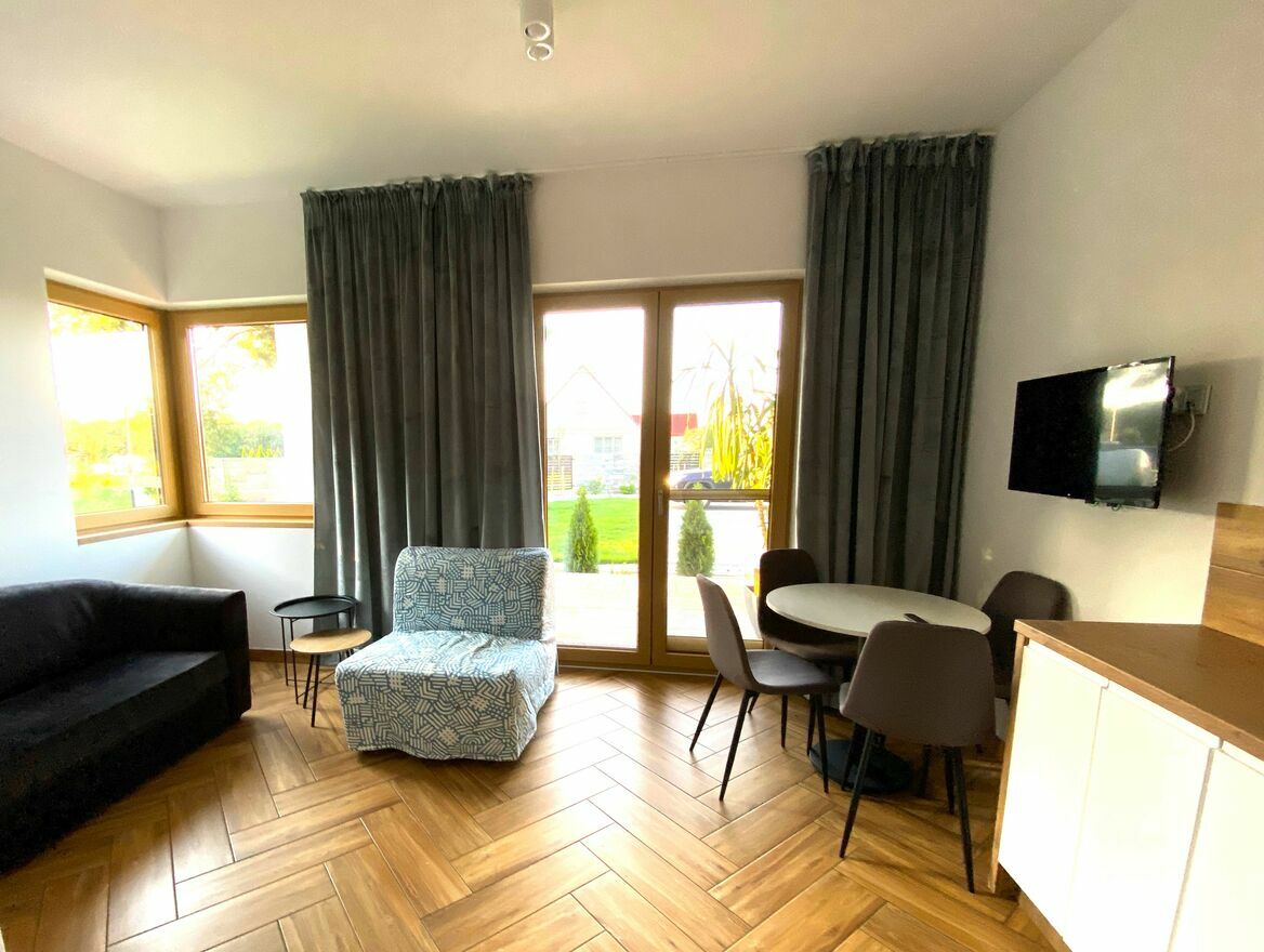 Pokoje gościnne całoroczne, w pełni wyposażone w tym: w TV, Internet światłowodowy, mini aneksy kuchenne, lodówki, łazienki, tarasy lub balkony.