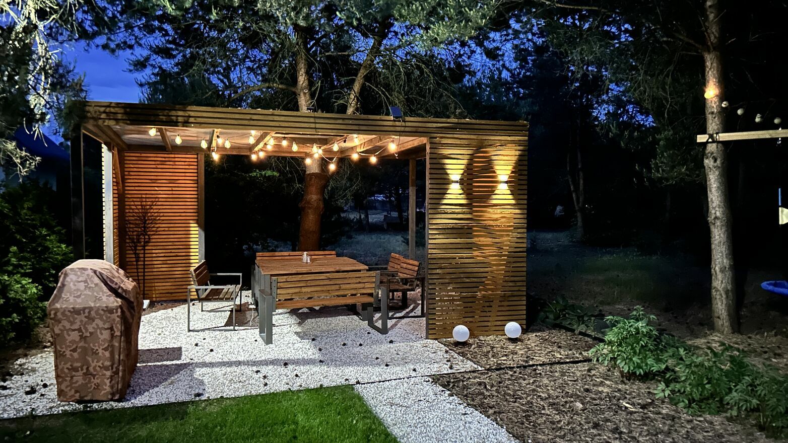Na terenie znajduje się w pełni zagospodarowany ogród z nowoczesną altaną, domkiem narzędziowym oraz wieloma nasadzeniami, w tym: Świerki, Sosny, Głogi, Tuje, Krzewy, Hortensje i inne.